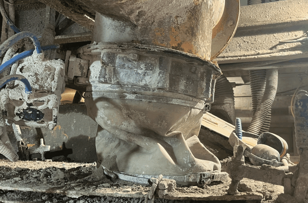 Consequently, staff would spend ~20 minutes after every shift cleaning the mixer area, clearing dust and also breaking off hardened cement with hammers. Staff also removed and re-attached the connector daily to clear the cement blockages.